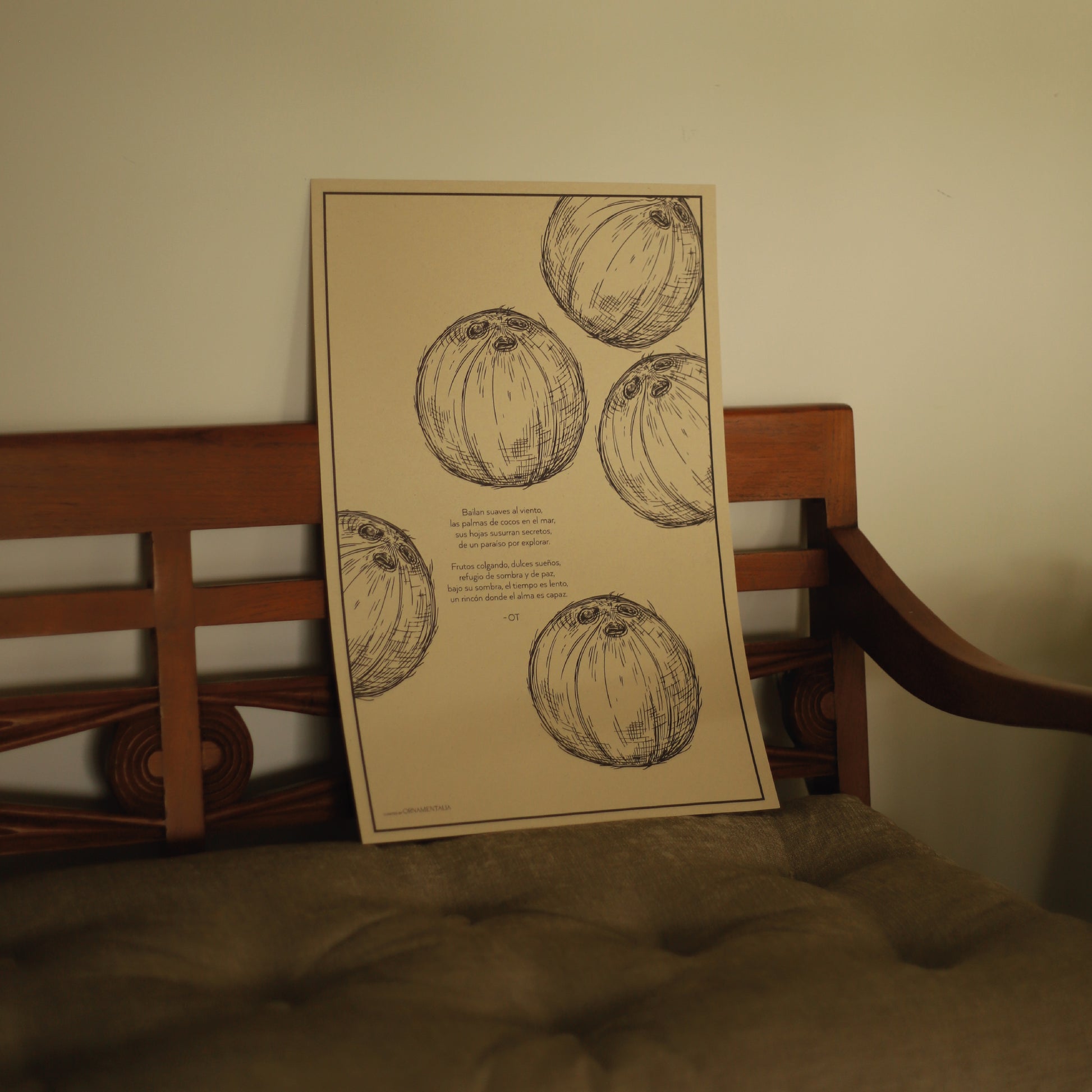 Este póster es más que una pieza decorativa: es una afirmación visual y poética del lugar que habitamos. Con ilustraciones hechas a mano alzada, digitalizadas y cuidadosamente diagramadas, cada imagen dialoga con frases y poemas originales de Ornamentalia, inspirados en la colección Ecos del Edén.