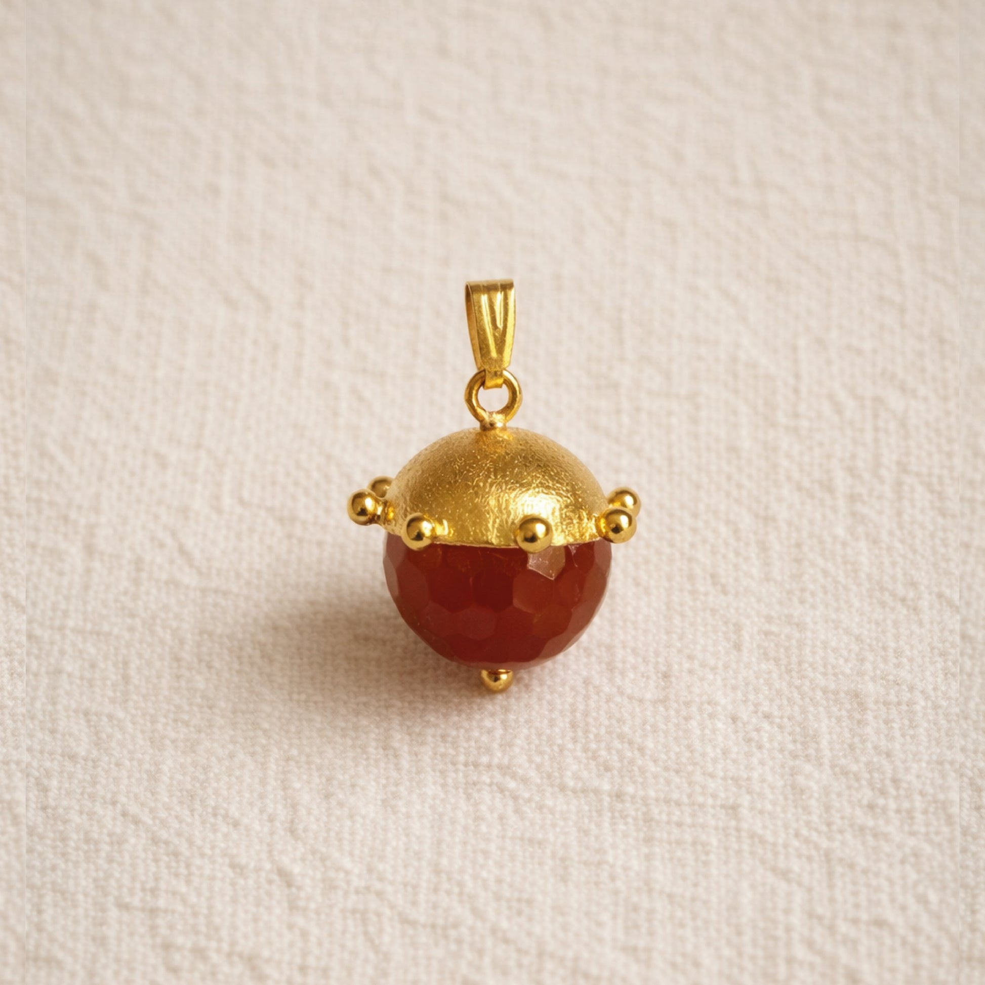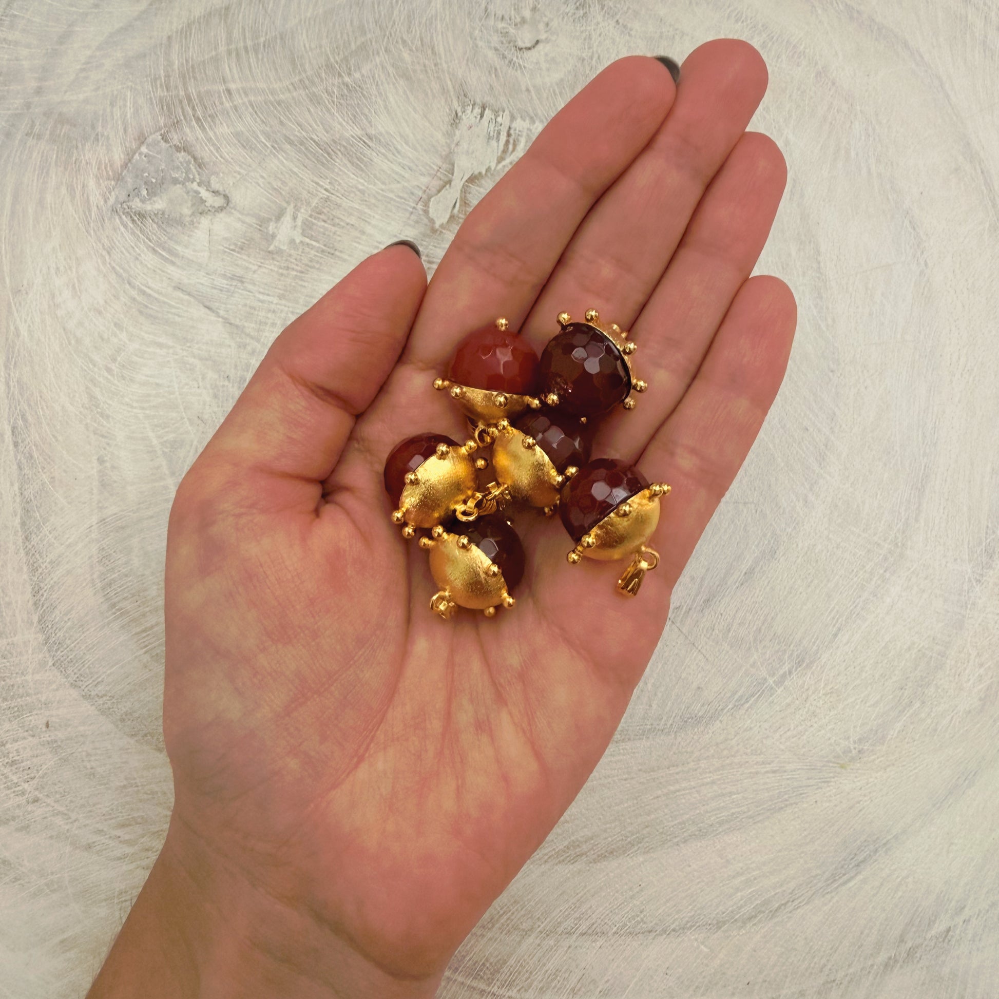 Fire Bloom es un charm elaborado en ágata roja natural, acompañado de un herraje en bronce con baño en oro de 24k, diseñado para integrarse con fluidez a cualquier cadena. Puedes llevarlo solo como protagonista o combinado con múltiples charms, creando capas llenas de intención y estilo.