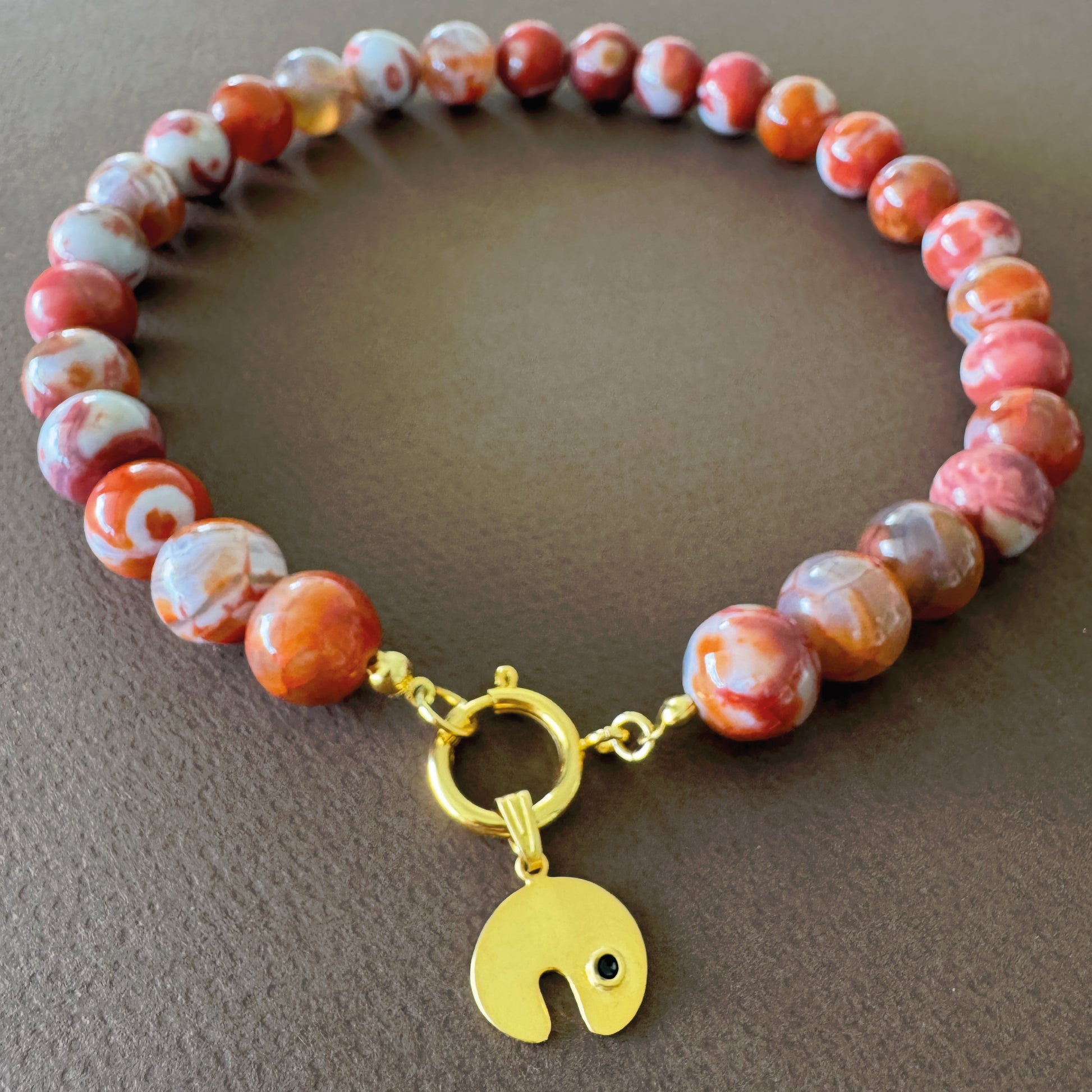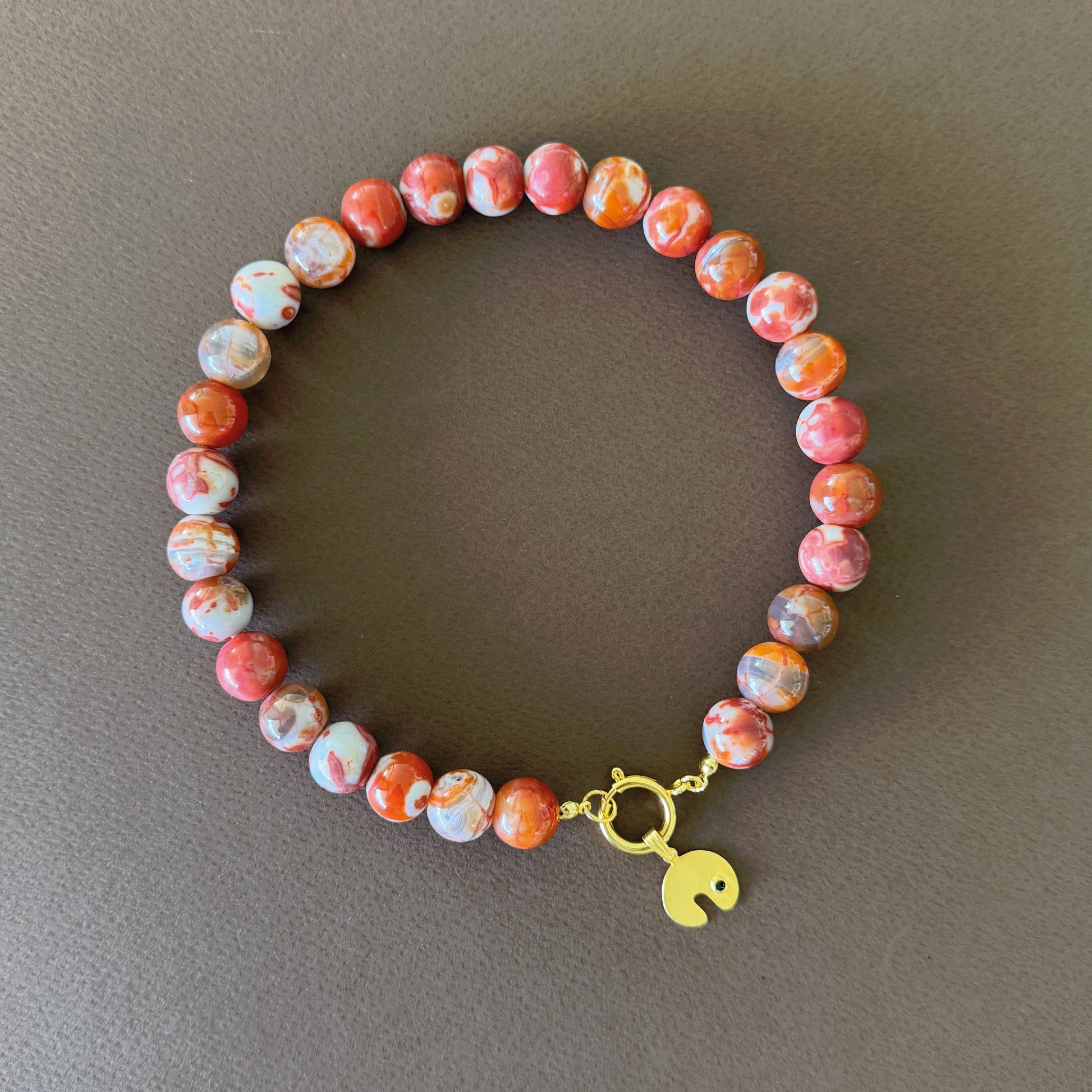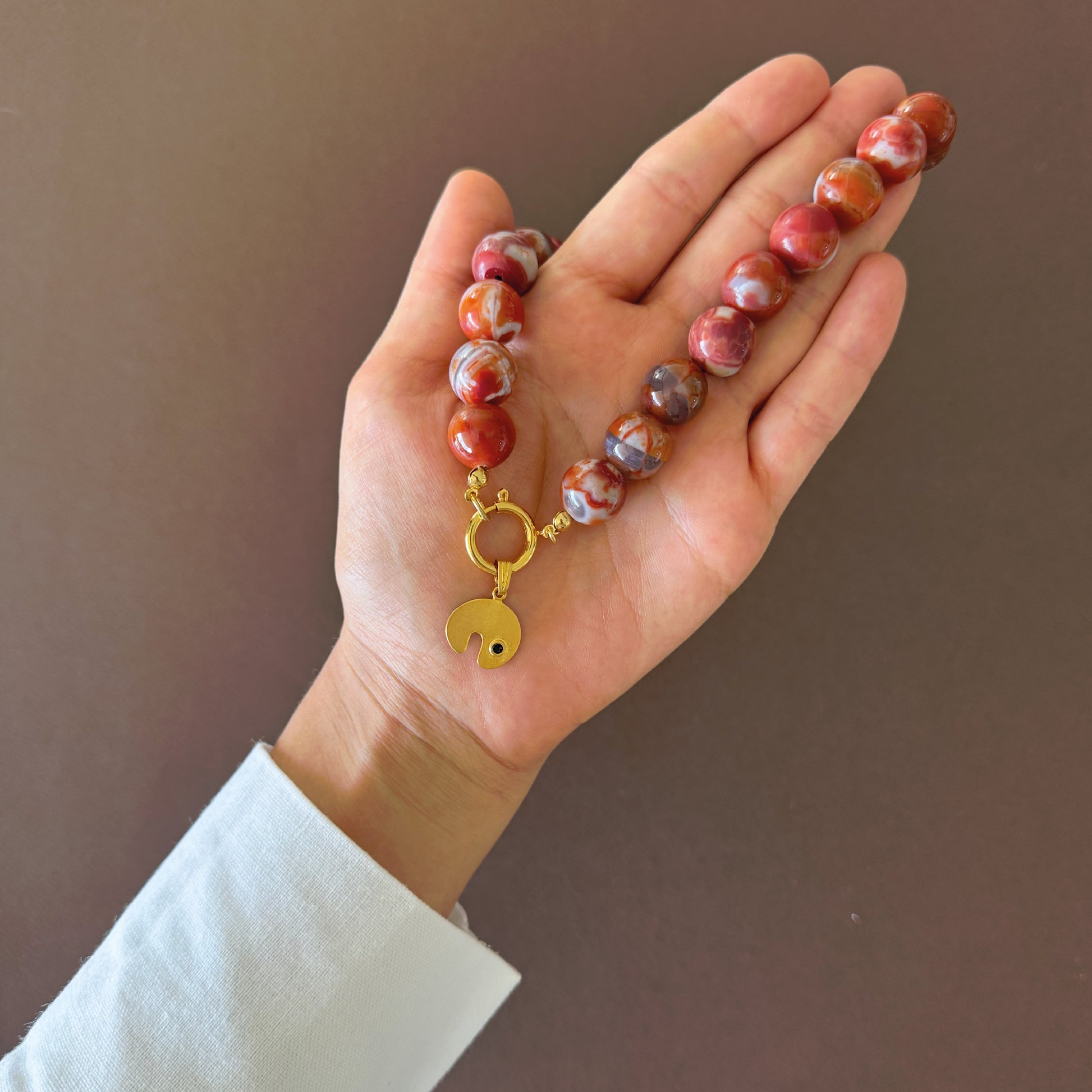 Un homenaje a la fuerza interior y los nuevos comienzos. Esta cadena de ágatas en tonos terracota irradia calidez y energía, conectándote con la tierra y tu centro. Las ágatas terracota son piedras de estabilidad emocional, coraje y equilibrio: ideales para protegerte mientras avanzas con propósito.